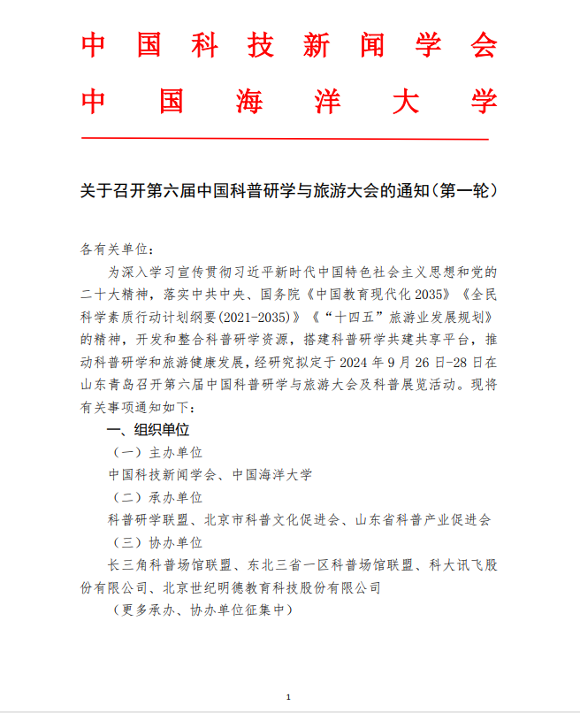 关于召开第六届中国科普研学与旅游大会的通知(第一轮)